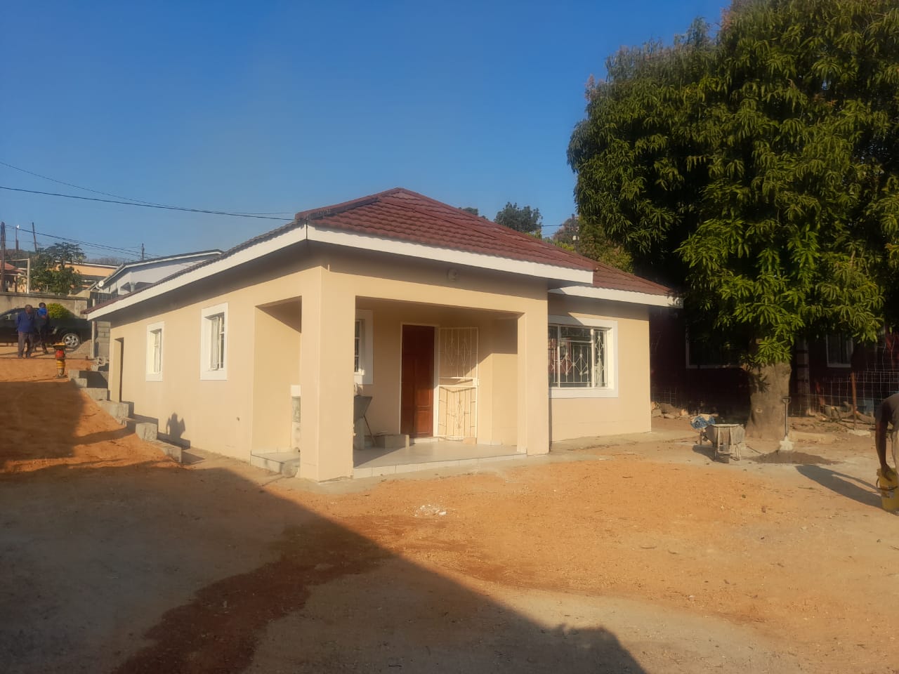 Zakhele, behind the shops, a stand-alone 2-bedroom house offering an en suite master bedroom, fitted bedrooms, and a lounge. The property is well-secured, priced at E6000.00 per month. to inquire or arrange a viewing, call 76139674/79139674